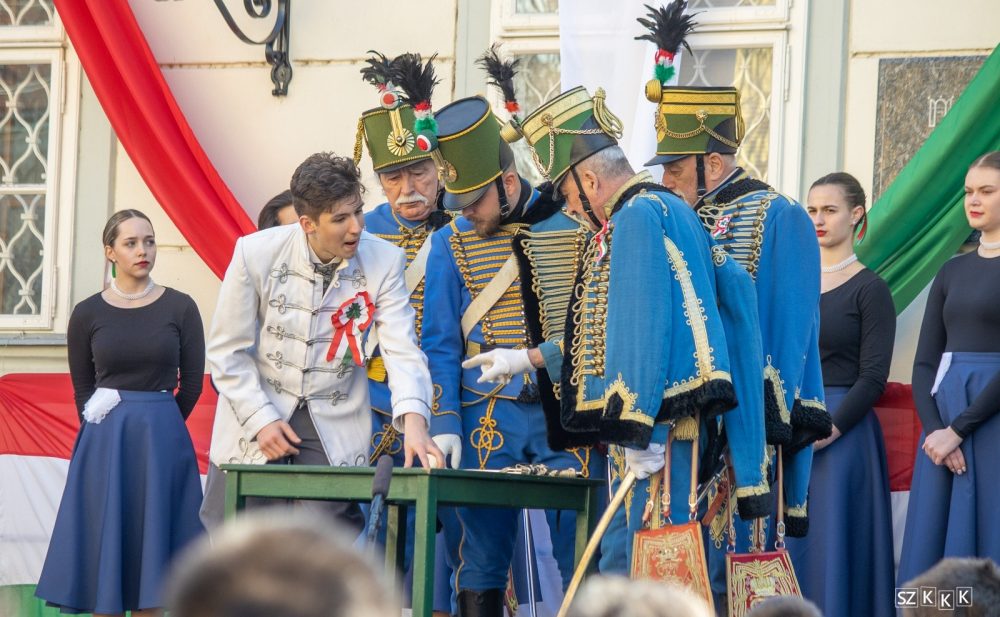 Kellemes tavaszi napsütésben, utcaszínházi előadással vette kezdetét a március 15-i ünnepi programsorozat Székesfehérváron. A Városház téren a Vasvári Pál Gimnázium, illetve a Vasvári Pál Általános Iskola egykori és jelenlegi diákjai, valamint a Szabad Színház közös produkciójában megelevenedtek az 1848-as forradalom eseményei és hősei.